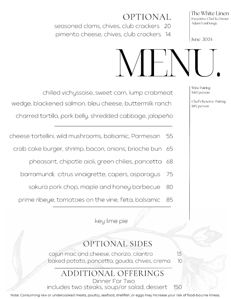 From delectable starters like Poke to heavenly entrees such as Risotto with Scallops, The White Linen promises dishes that not only satisfy but delight. Plan your visit today and discover why diners keep returning for another taste of this culinary paradise!